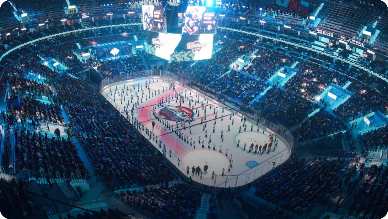 Оборудование и программное обеспечение для многофункционального комплекса, вмещающего до 21 500 зрителей во время хоккейных матчей и концертов.