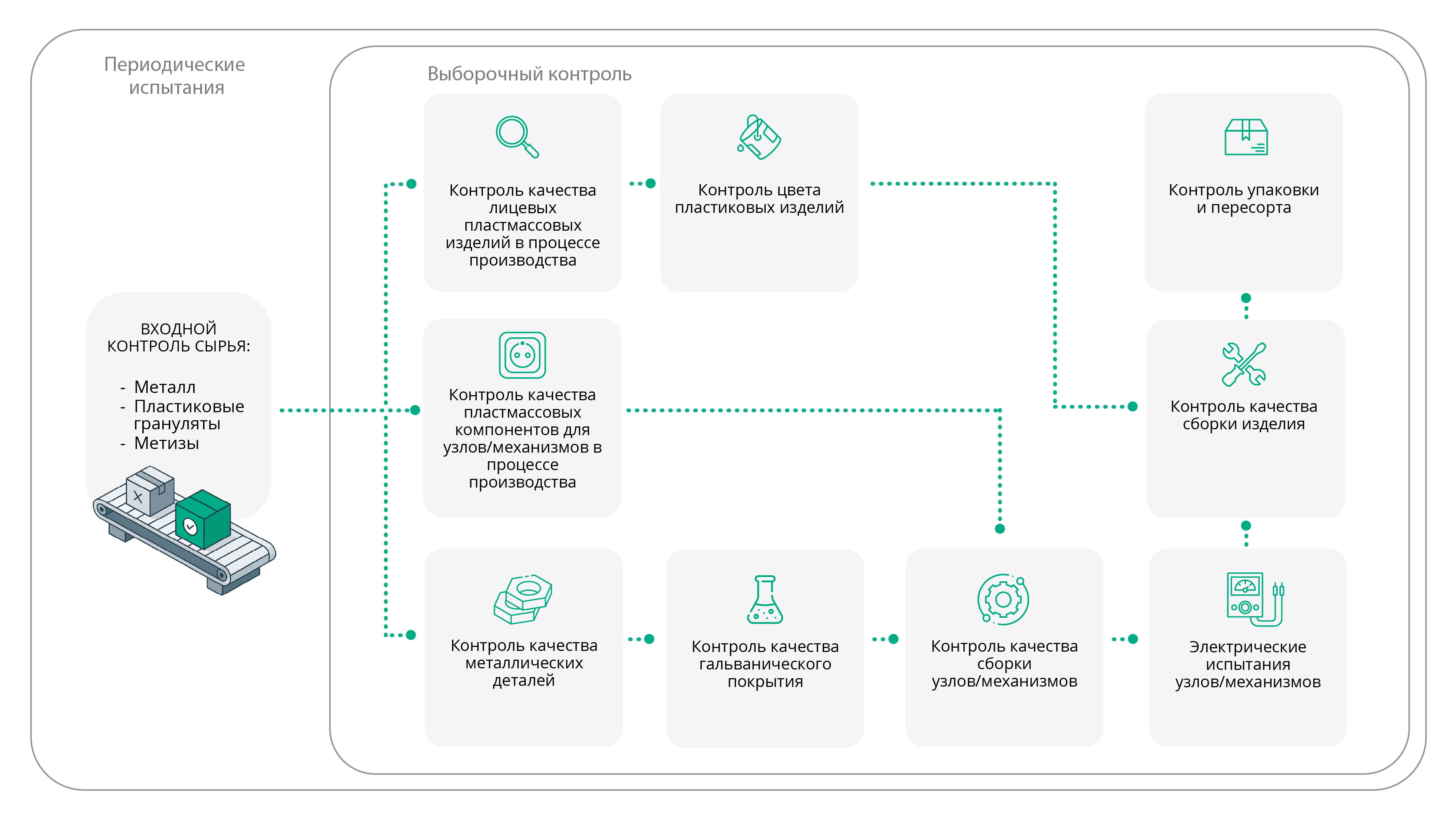 Ключевые зоны контроля качества на производстве: