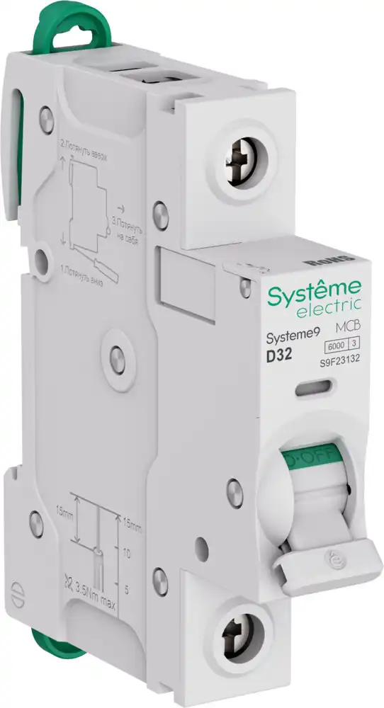 Серия: Systeme9Systeme9 Автоматический выключатель (АВ) D 32A 1P 6kA 230В
