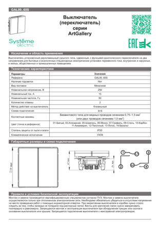 Выключатель (переключатель) GAL00..65S серии ArtGallery