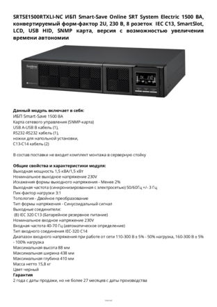 SRTSE1500RTXLI-NC паспорт изделия
