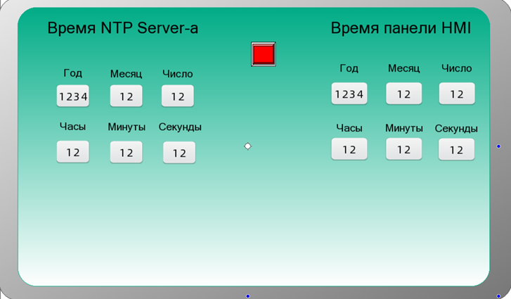 С целью визуального контроля синхронизации времени панели HMI от NTP сервера создадим на этом же экране нашего проекта аналогичные поля (Год, Месяц, Число и т.д.), но уже для даты и времени самой панели HMI со своими адресами.