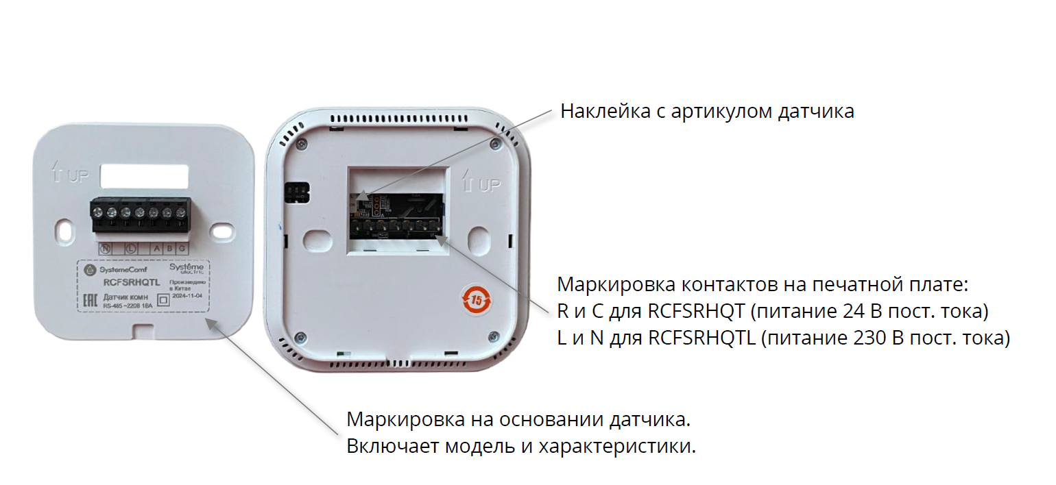 Полная маркировка модели, включающая артикул и основные характеристики, нанесена только на основание датчика. Поэтому, чтобы определить модель датчика, когда он снят с основания, необходимо обратить внимание на маркировку на печатной плате.