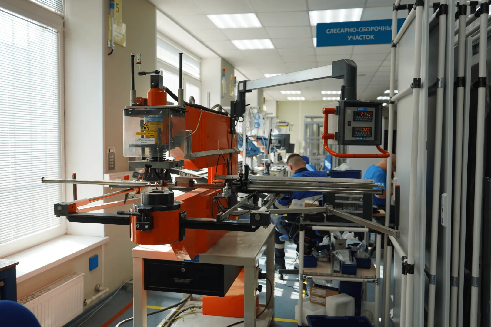 Дополнительная линия для производства релейных шкафов укомплектована новым современным оборудованием: для подготовки отверстий в лицевых панелях и дверях, куда производится монтаж светосигнальной аппаратуры и органов управления, будет использоваться специализированный пробивной станок. На линии также установлен станок мерной резки кабельной продукции, позволяющий в автоматическом режиме производить подготовку проводов нужной длины и выполнять их зачистку для дальнейшей обработки.
