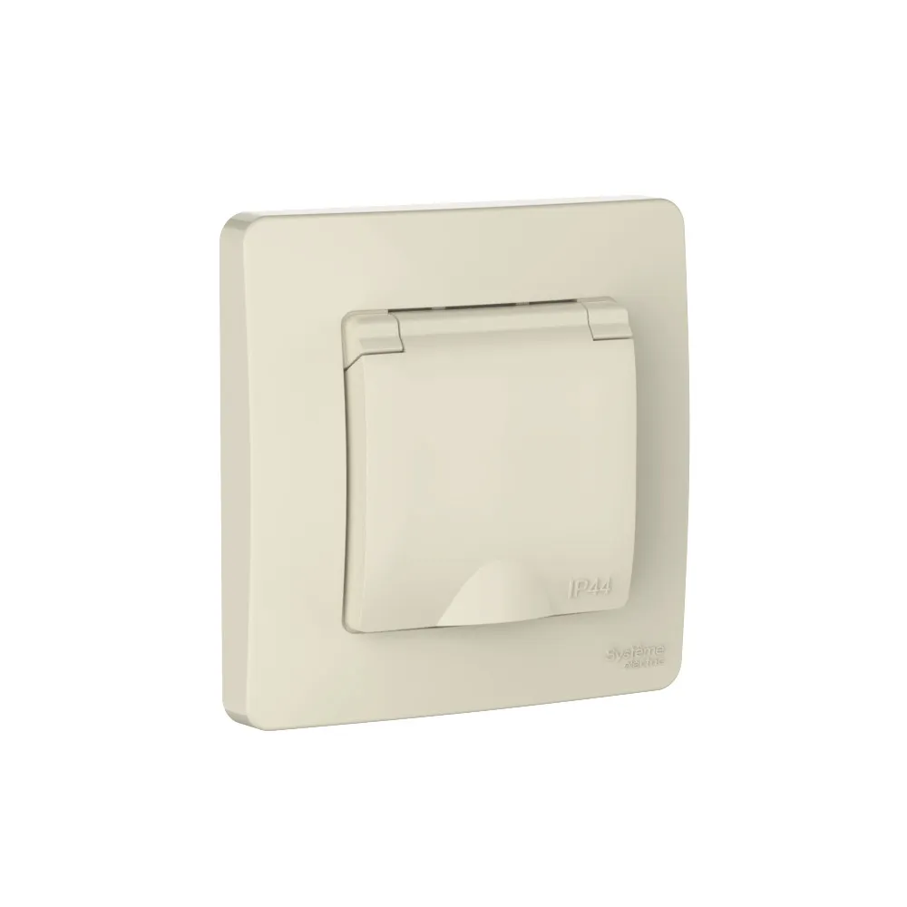 BLANCA С/У IP44 РОЗЕТКА с заземлением со шторками, с крышкой, 16А, 250В, МОЛОЧНЫЙ