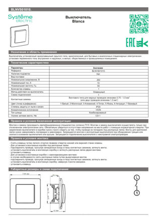Выключатель Systeme Electric (ранее Schneider Electric) BLANCA (алюминий, скрытой установки) одноклавишный предназначен для сетей до 250В, на ток до 10А. Выключатель подходит для большинства типов ламп, включая люминесцентные. Он изготовлен из ABS-пластика, прост в установке и удобен в применении.