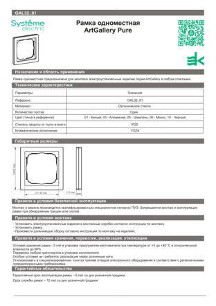 Рамка Systeme Electric серии ArtGallery Pure из органического стекла в цвете черный в 1-постовом исполнении. Органическое стекло черный - глубокий глянец, добавляет контраста и современной графичности.