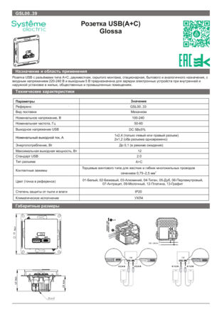 GSL00..39 Розетка USB(A+С) серии Glossa