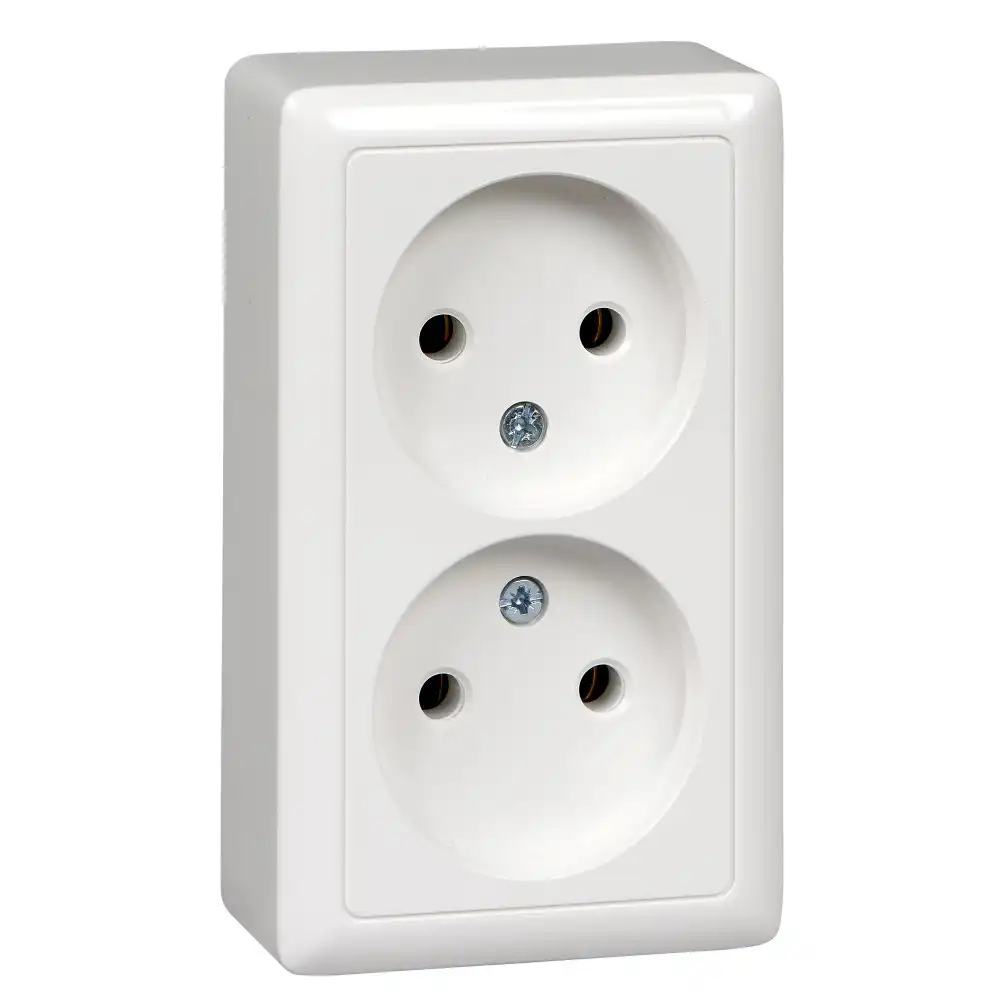 Розетка Systeme Electric (ранее Schneider Electric) ХИТ (открытой установки, цвет белый) с заземлением, без шторок, с изолирующей пластиковой пластиной предназначена для сетей до 250 В на ток до 16 А. Розетка изготовлена из ABS-пластика, проста в установке, прочна и надежна в применении. Заземляющий контакт обеспечивает дополнительную защиту от удара электрическим током. При наличии заземления электрический потенциал уходит в землю, защищая человека. Сделано в России.