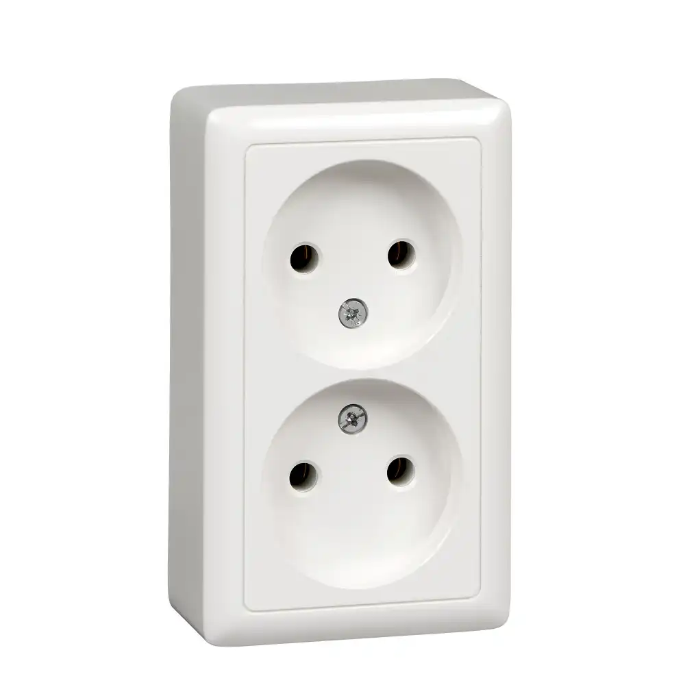 Розетка Systeme Electric (ранее Schneider Electric) ХИТ (открытой установки, цвет белый) двойная без заземления, со шторками, с изолирующей пластиковой пластиной предназначена для сетей до 250 В на ток до 16 А. Двойная розетка позволяет подключить два устройства в одном месте. Шторки обеспечивают дополнительную безопасность в доме, где находятся дети. Розетка изготовлена из ABS-пластика, проста в установке, прочна и надежна в применении. Сделано в России.
