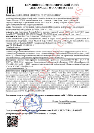 ИБП SRTSE 2 поколения 6000 ВА/Вт, 4U,5 C13+3 C19,USB,RS-232,RS485,COM,сухие контакт,SNMP