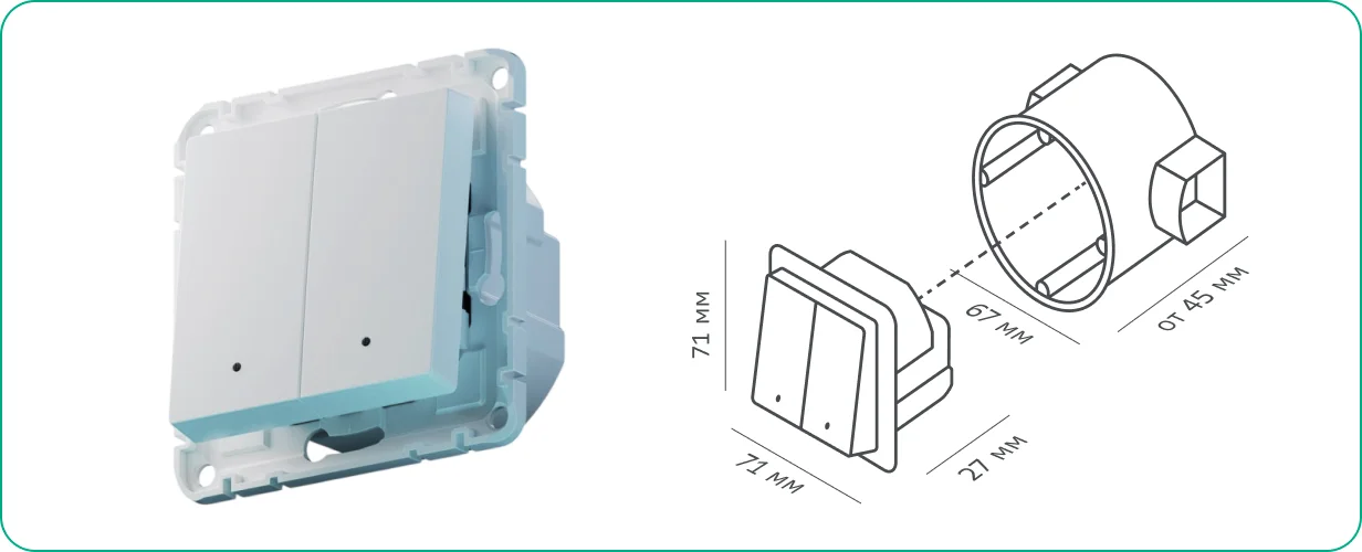 Можно установить в стандартный круглый подрозетник глубиной от 45 мм