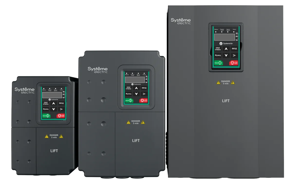 STV900L - одна из основных серий преобразователей частоты семейства SystemeVar для лифтового применения с возможностью подключения датчиков обратной связи, функцией безопасности STO (Safe Torque Off) и специальными лифтовыми функциями.