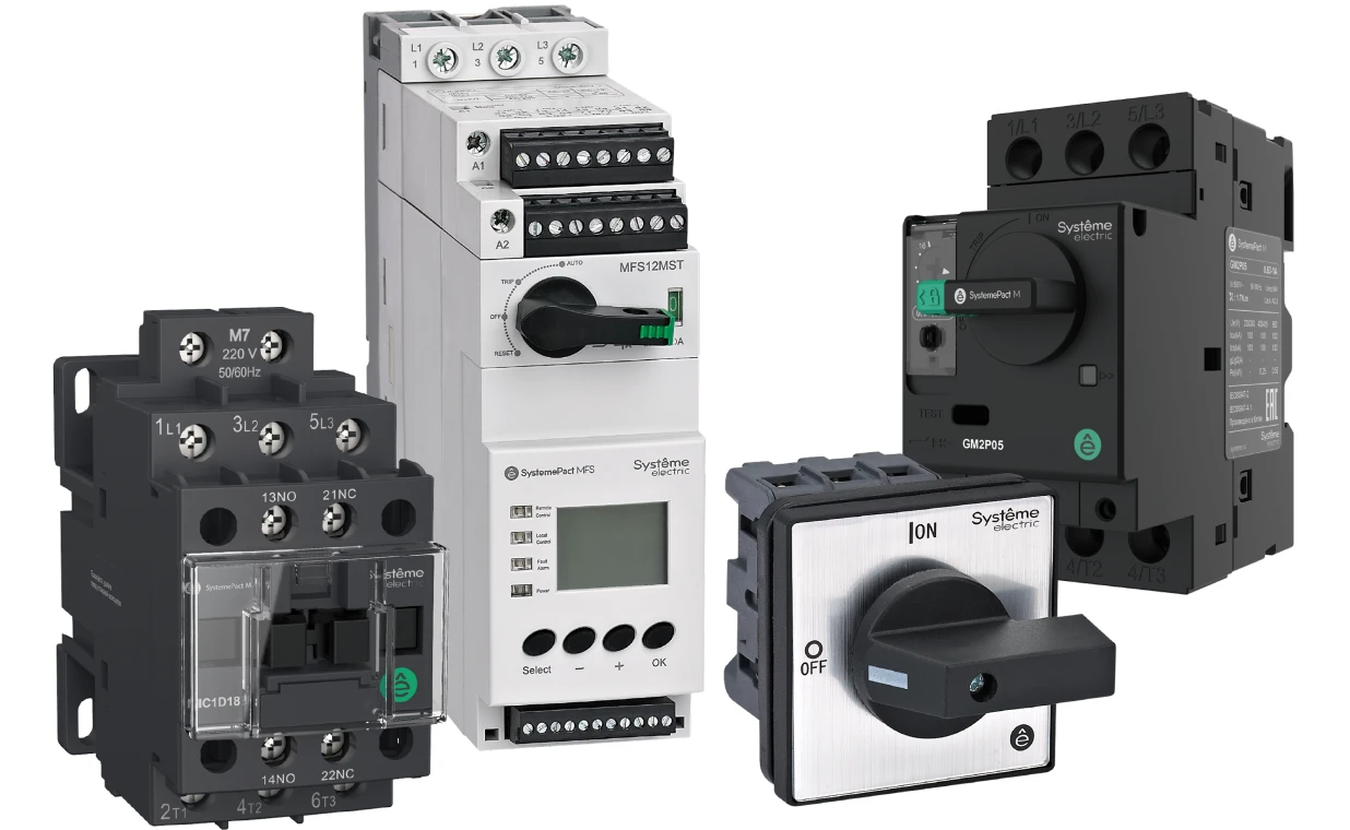 Пускорегулирующая аппаратура SystemePact M включает в себя полный спектр компонентов для защиты и управления электродвигателями, необходимый для реализации самых сложных решений, требующих максимальной производительности и надежности.